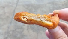 カバラガラの厚さは約1センチ。揚げたてはもちもち。冷めると弾力が増す。