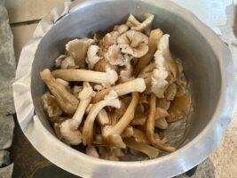 ピリピリ・ムブジというトウガラシは、とても爽やかな香りと辛みで、キノコ の風味にとてもよく合う。ぜひ単品で、シンプルに、シシアンカ を楽しみたい。