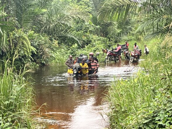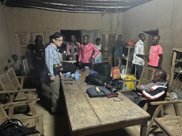 静寂に包まれた闇夜を切り裂くようにして、ヘッドライトを光らせた5台のバイクが列をなして疾走する。2025年8月12日、ここはコンゴ民主共和国の深い森の中、時刻は19時をまわっていた。8月11日に首都キンシャサからセスナ機で移動し、11日から12日にかけて県庁所在地ジョルでのさまざまな準備と手続きをおこない、さらに4時間以上かけてバイクで悪路を進む、という長い旅路を経て、いよいよワンバ村が近づいてきた。今回の道のりがひときわ長く困難だったのは、移動時間のためだけではない。ワンバでのすべての研究活動が中断して以来、2年以上ぶりに研究を再開させるための旅だったからである。