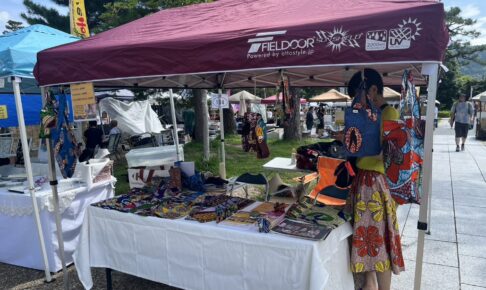 当日はとにかく暑いアツイ、酷暑の日で初めての出店としてはハードなコンディションでした。暑すぎて出店者さんも来場するお客さんも少ないという状況でしたが、足を止めて下さる方はおり、ベナンでの活動などについてお話ししました。やはり色柄が豊富なトートバックが人気で皆さんトートバックを購入してくださいました。手作り製品で全く同じものはないので、色々見比べて購入される方もおられました。